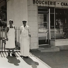 La boucherie voit le jour à Beau-Site en 1947. A cette époque, elle est tenue par André Pellaton, plus souvent appelé ”Cumi" et son épouse Anna née Graeppi. Leur fils, Paul Pellaton, ainsi que son épouse Fernande reprennent la boucherie en 1956 et engagent Francy Jeanneret (mon père) en tant que livreur en 1957. En août 1958, Francy Jeanneret commence son apprentissage au sein de la boucherie pour y travailler ensuite comme employé jusqu’à l'obtention de sa Maîtrise Fédérale en 1966. C'est en 1971 que Francy Jeanneret et son épouse Madeleine reprennent la boucherie. Avec passion et sans relâche, ils y travaillent pendant 28 ans et forment 8 apprentis avant de passer la main а leur fils Pascal Jeanneret.